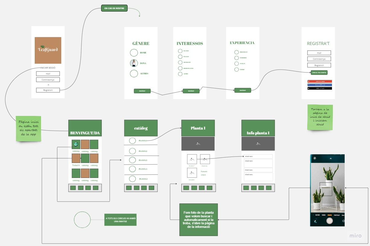 Leafguard es el nombre que hemos puesto a la app. Con una estética inspirada en la naturaleza, utilizando los colores marrones y verdes, y una combinación de tipografías Berkshire Swash para los títulos y Cardo para el cuerpo del texto. Con imágenes e iconos relacionados con plantas, nuestra empresa tiene como objetivo facilitar a los amantes de la jardinería el acceso a la información y herramientas necesarias para el cultivo y el mantenimiento de sus plantas de interior.